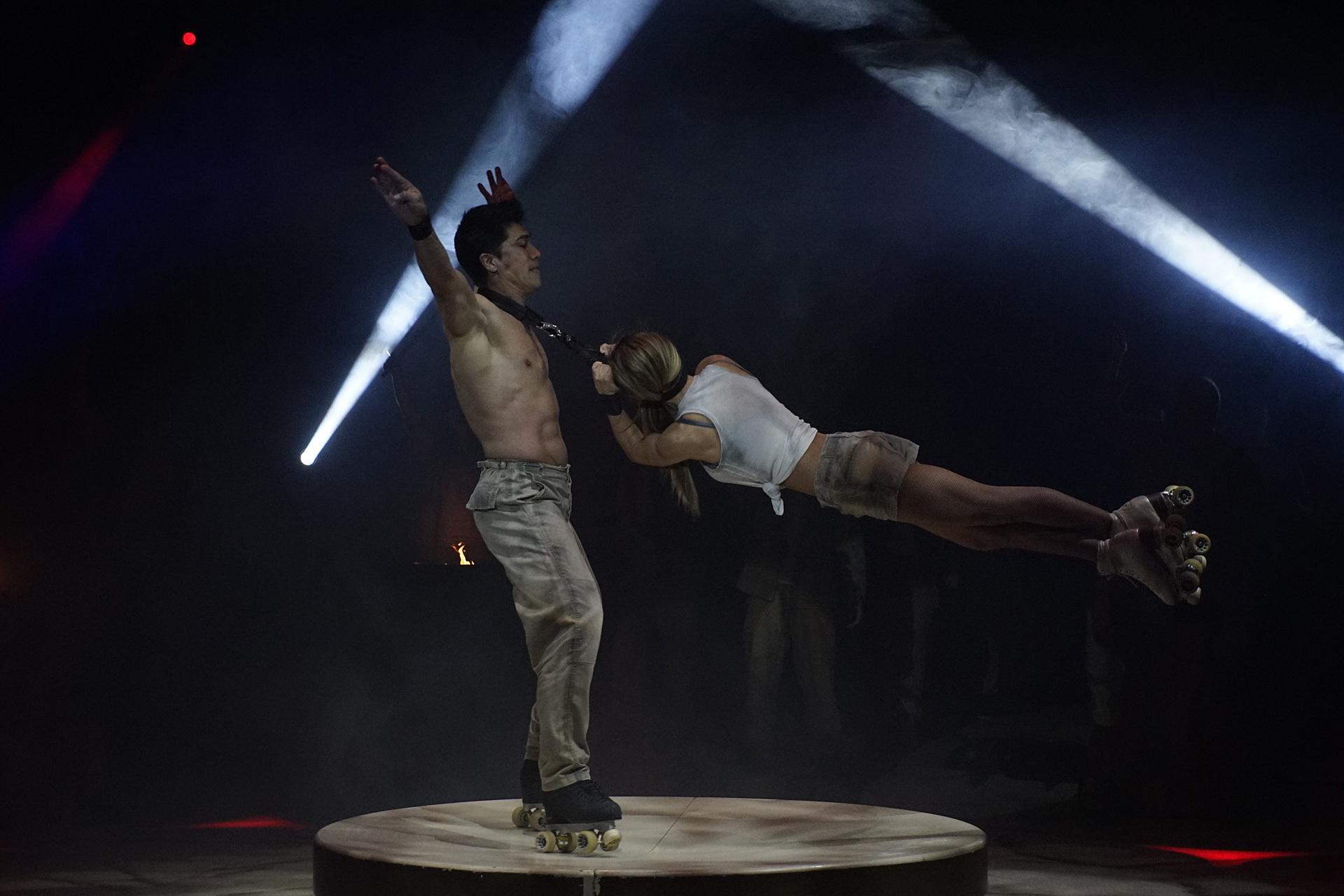 Showtechnisch ist das aktuelle Programm „Höchststrafe“ sowieso allererste Sahne: Die Artisten spielen in einem Gefängnisszenario aus Käfigen und Gittern, es geht um Flucht, Ausbruch, Schlägereien und Liebe hinter Gittern. Da schießen Feuerlohen hoch, da sprühen Fontänen aus Wasserbecken, da rotiert ein Rollschuhläuferpaar auf einem winzigen Podium. Zum Schluss donnert ein halbes Dutzend Motorradfahrer kreuz und quer durch eine Gitterkugel – und fliegt schließlich mit atemberaubenden Sprung-Stunts bis hoch unter die Zeltkuppel. Dem Zuschauer bleibt der Mund offen. Fast könnte man das Fotografieren vergessen. Oder zumindest das Scharfstellen am Objektiv.